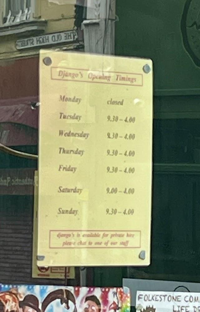 Nestled in the heart of Folkestone, Django's Cafe Bar is a convenient destination for both locals and tourists. The cafe's inviting atmosphere welcomes everyone with open arms, making it a favorite spot for groups and families alike. With wheelchair accessibility, it caters to all, ensuring a comfortable dining experience. The location offers both indoor seating and a charming outdoor patio, perfect for soaking up the sun during those beautiful coastal days. The surrounding area, brimming with shops and attractions, makes it easy to combine a meal at Django's with a stroll around town. With paid parking options nearby, stopping by isn’t a hassle, making it an easy choice for a delightful meal any day of the week.